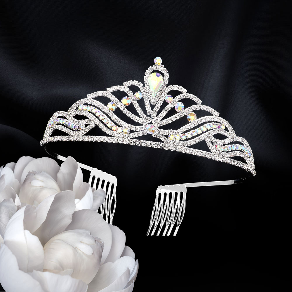 Teardrop Stone Pointed Rhinestone Paved Princess Tiara
