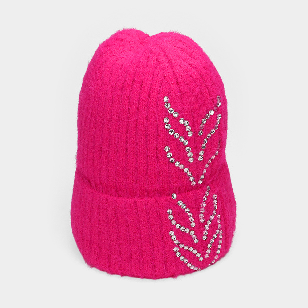 Bling Arrow Studded Accented Fuzzy Winter Beanie Hat