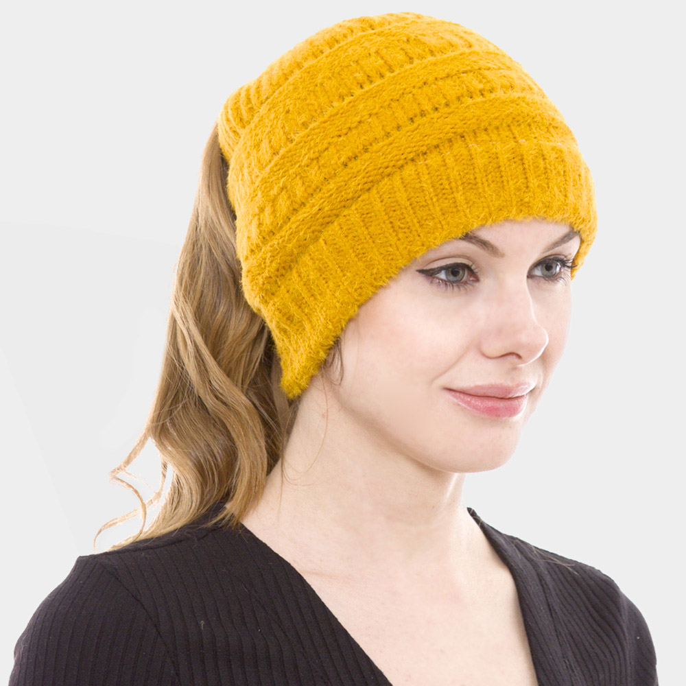 Cable Knit Ponytail Beanie Hat