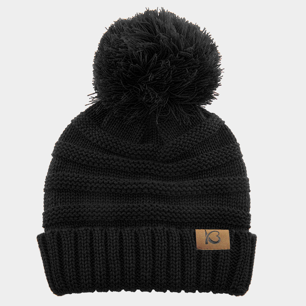 Cable Knit Ribbed Chunk Pom Pom Beanie Hat