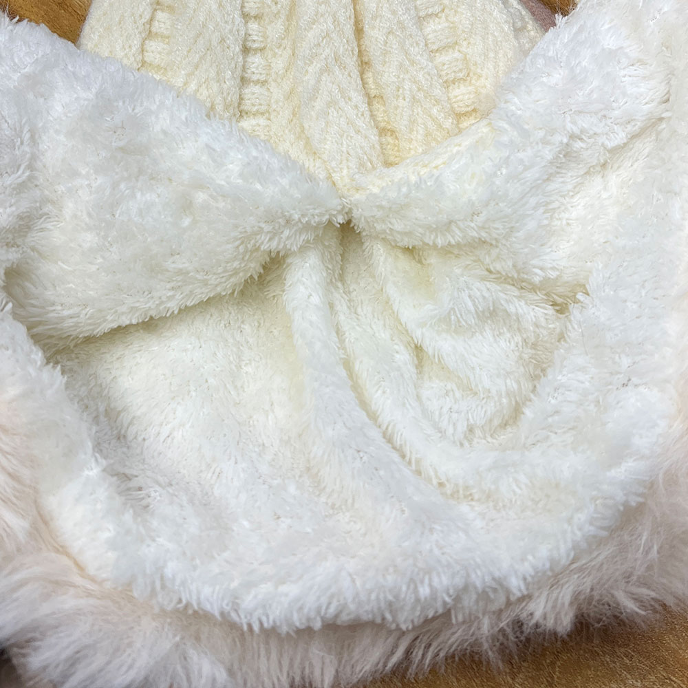 Fleece Lining Solid Knit Faux Fur Pom Pom Beanie Hat
