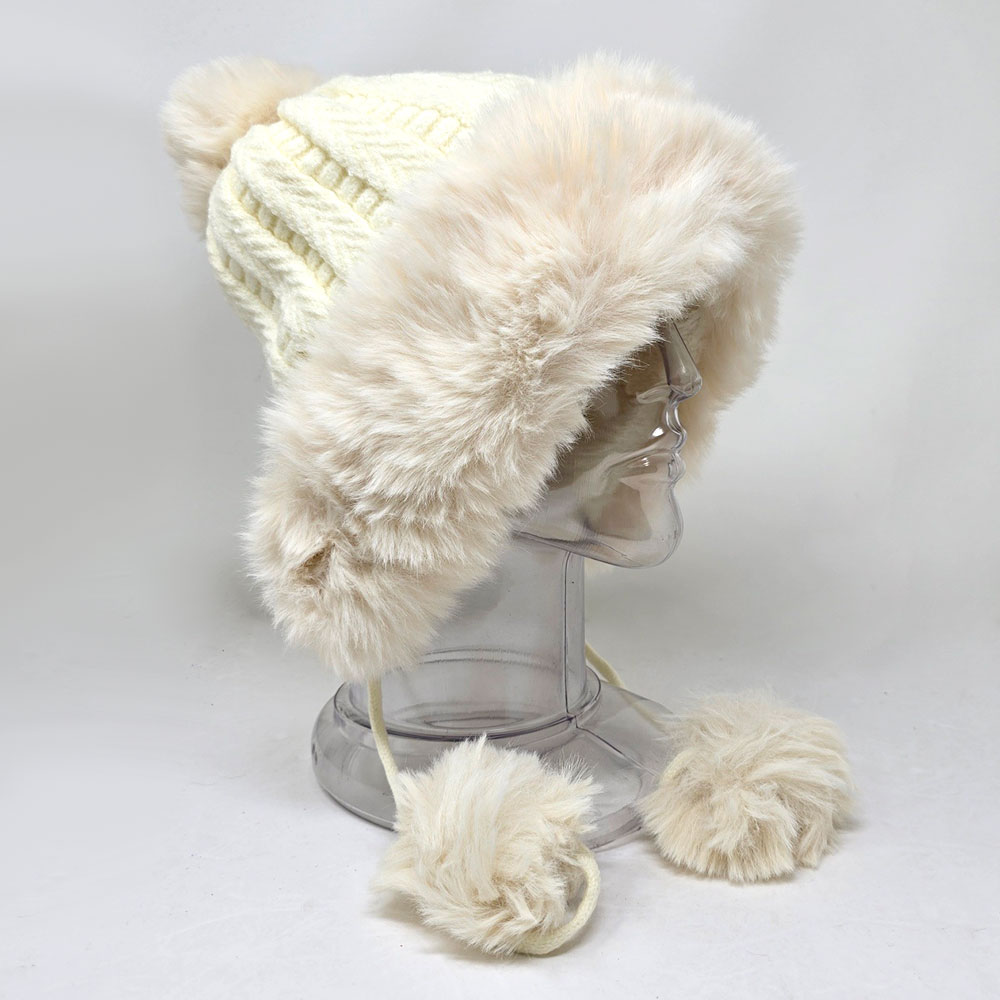 Faux Fur Ear Flap Pom Pom Winter Trapper Hat