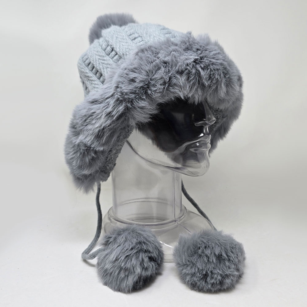 Details • Size : One Size (24" L) • Material : 100% Acrylic • Stay cozy and stylish with this winter trapper hat featuring plush ear flaps and playful pom-poms. Designed for warmth and comfort, it offers full coverage against cold weather. Perfect for outdoor activities, travel, or casual wear, this hat combines practicality with a fun, fashionable look.