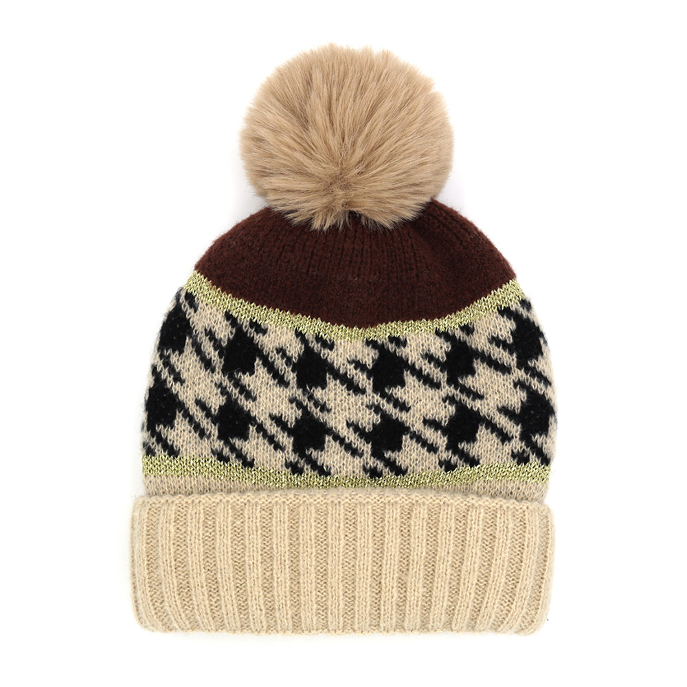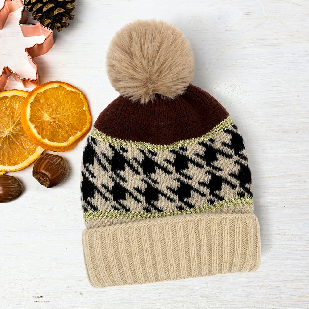 -T- Initial Monogram Faux Fur Pom Pom Knit Beanie Hat