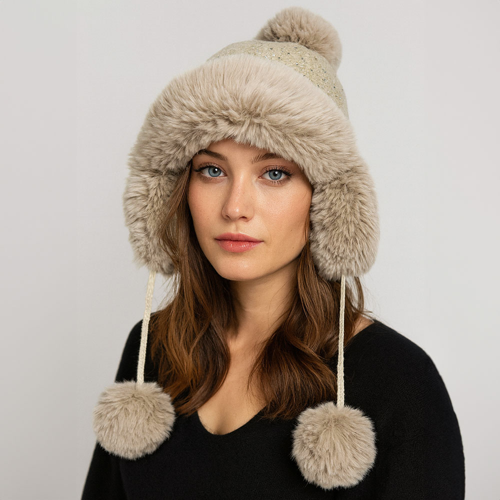 • Add sparkle to your cold-weather style with this winter trapper hat featuring rhinestone accents, plush ear flaps, and playful pom-poms. Designed for warmth and elegance, it’s perfect for outdoor wear, travel, or casual outings, blending cozy protection with chic, eye-catching details.