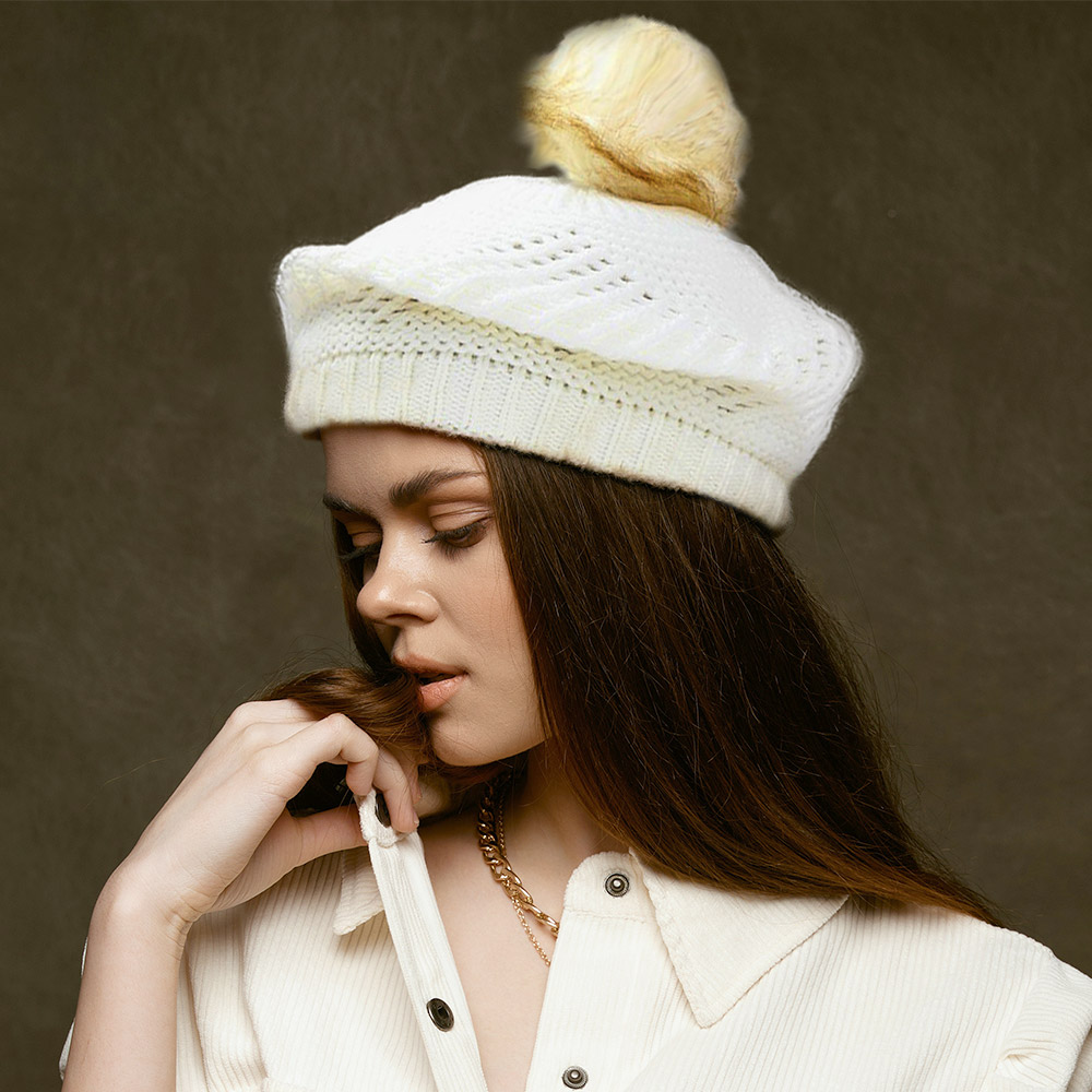 Slouchy beanie hat with pom pom