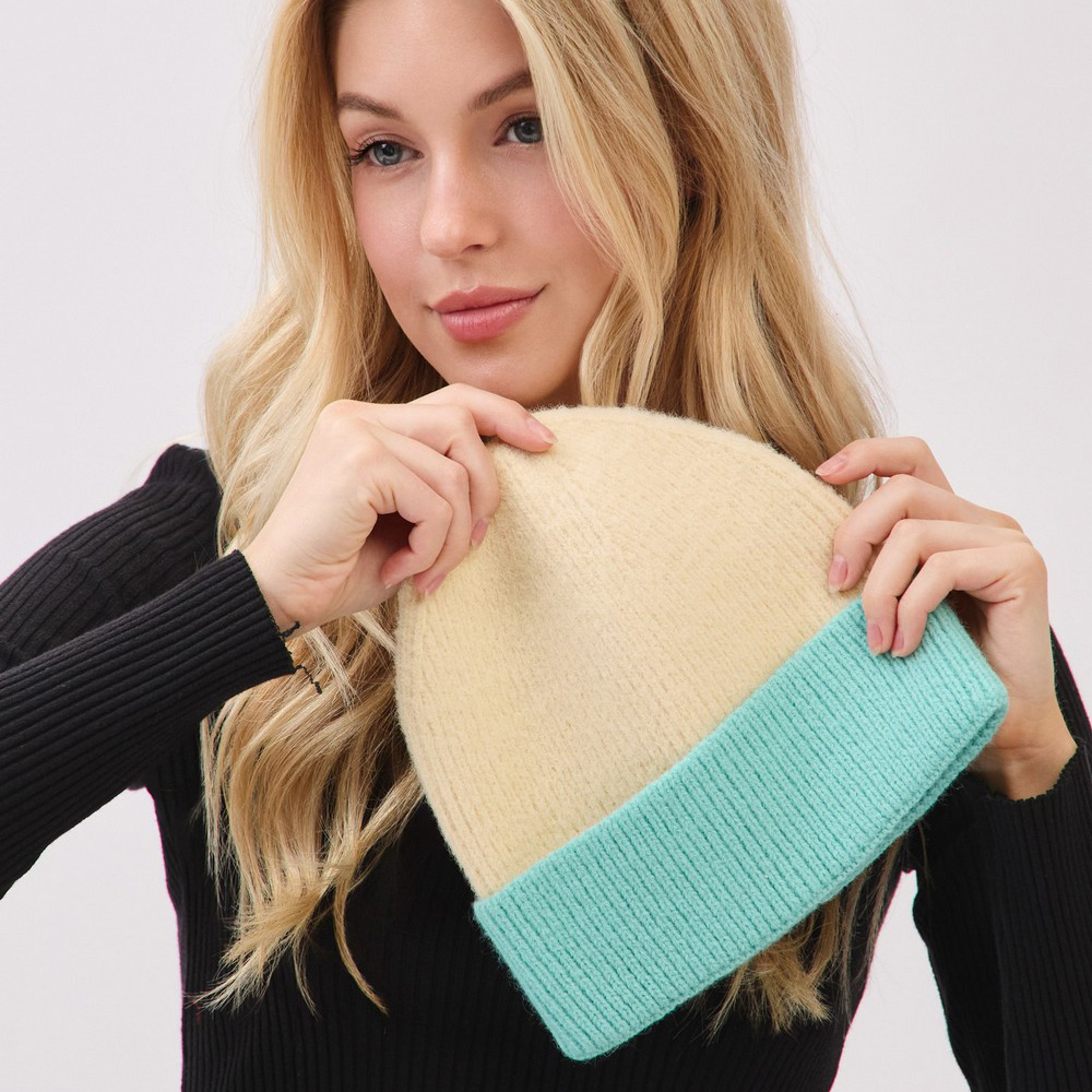 Two Tone Soft Fuzzy Knit Winter Beanie Hat