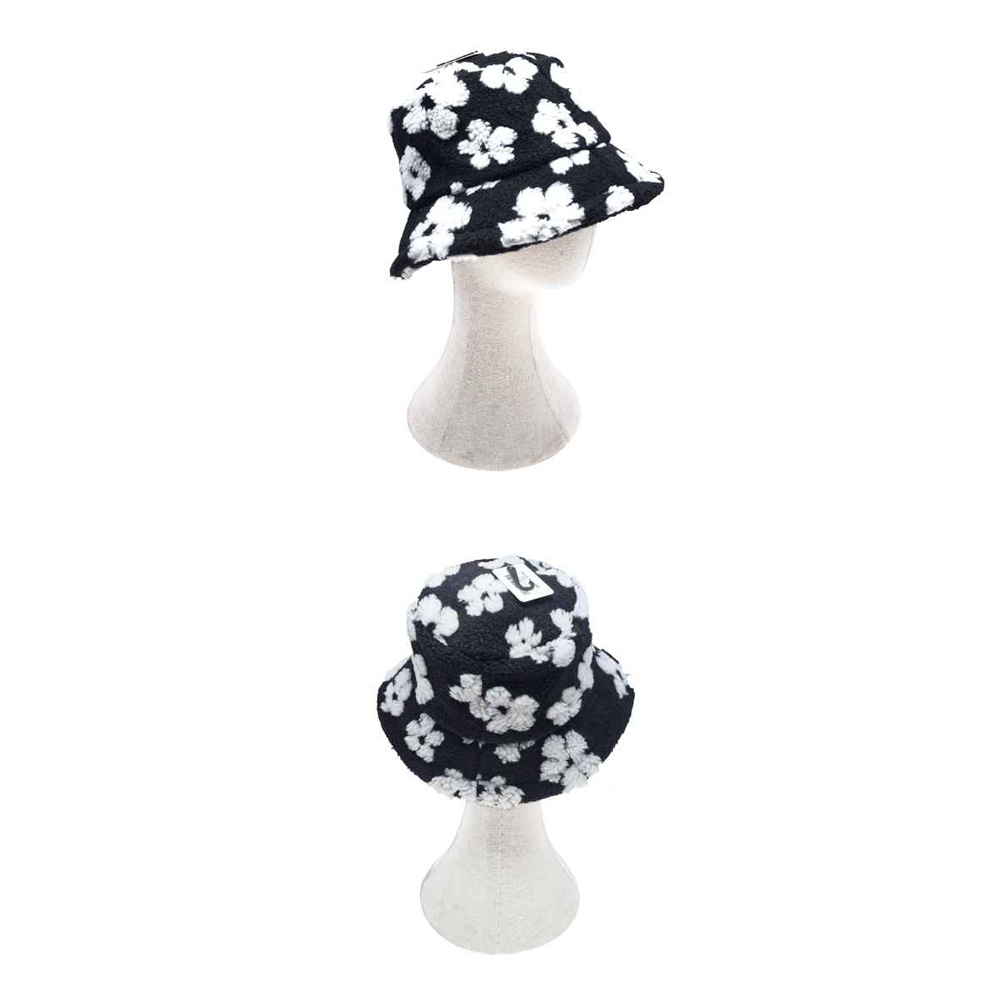 Details • Crown Circumference : 23" (Adjustable) • Crown Height : 6.5" • Brim Height : 2.5" • Material : 100% Polyester • Stay warm and stylish with this faux fur bucket hat featuring a bold floral pattern. Soft and cozy, it combines comfort with fashion, making it perfect for winter outfits, casual wear, or streetwear looks. A trendy statement piece that adds charm and flair to any wardrobe.