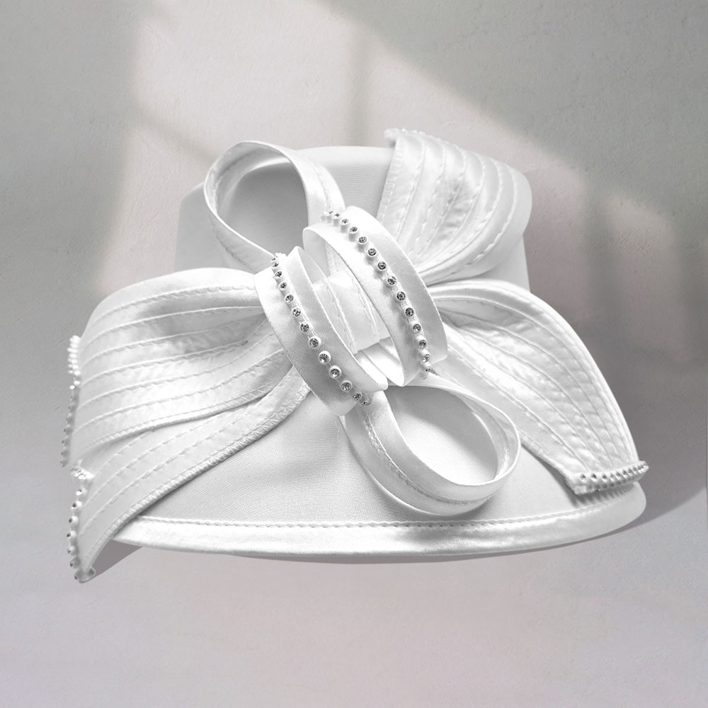 • Make a refined statement with this elegant formal hat, designed with a sculpted bow and sparkling rhinestone trim. Perfect for weddings, church services, and upscale occasions, this sophisticated accessory combines timeless style with graceful detailing.
