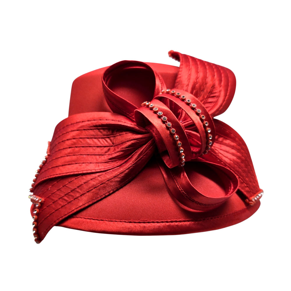 • Make a refined statement with this elegant formal hat, designed with a sculpted bow and sparkling rhinestone trim. Perfect for weddings, church services, and upscale occasions, this sophisticated accessory combines timeless style with graceful detailing.