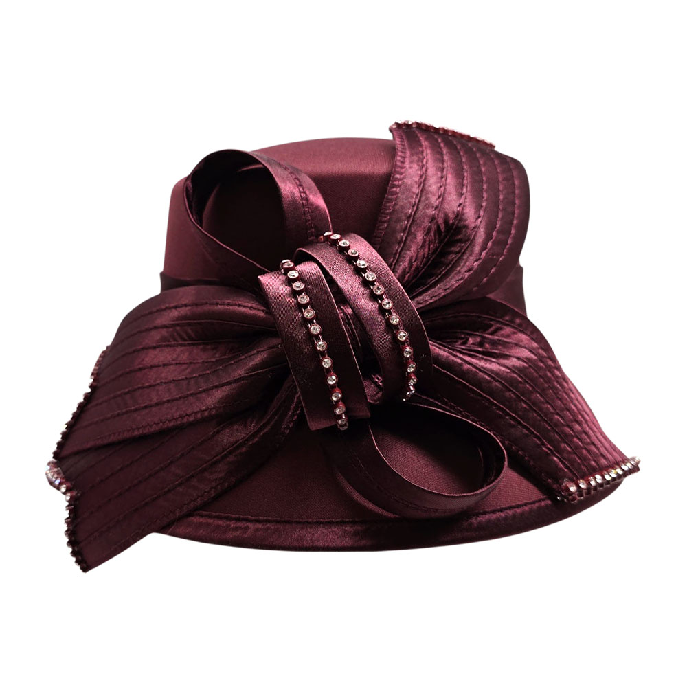 • Make a refined statement with this elegant formal hat, designed with a sculpted bow and sparkling rhinestone trim. Perfect for weddings, church services, and upscale occasions, this sophisticated accessory combines timeless style with graceful detailing.