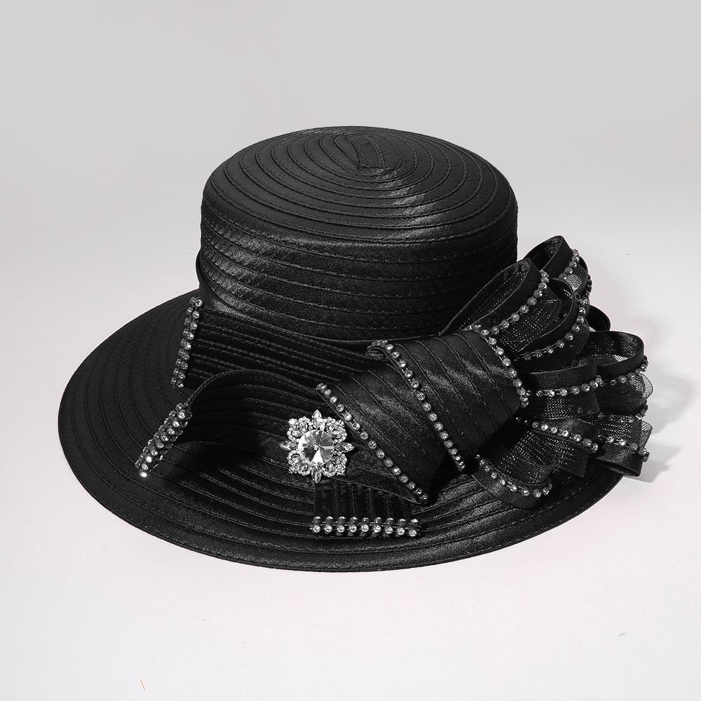 Rhinestone Center Feather Bow Accent Dressy Hat