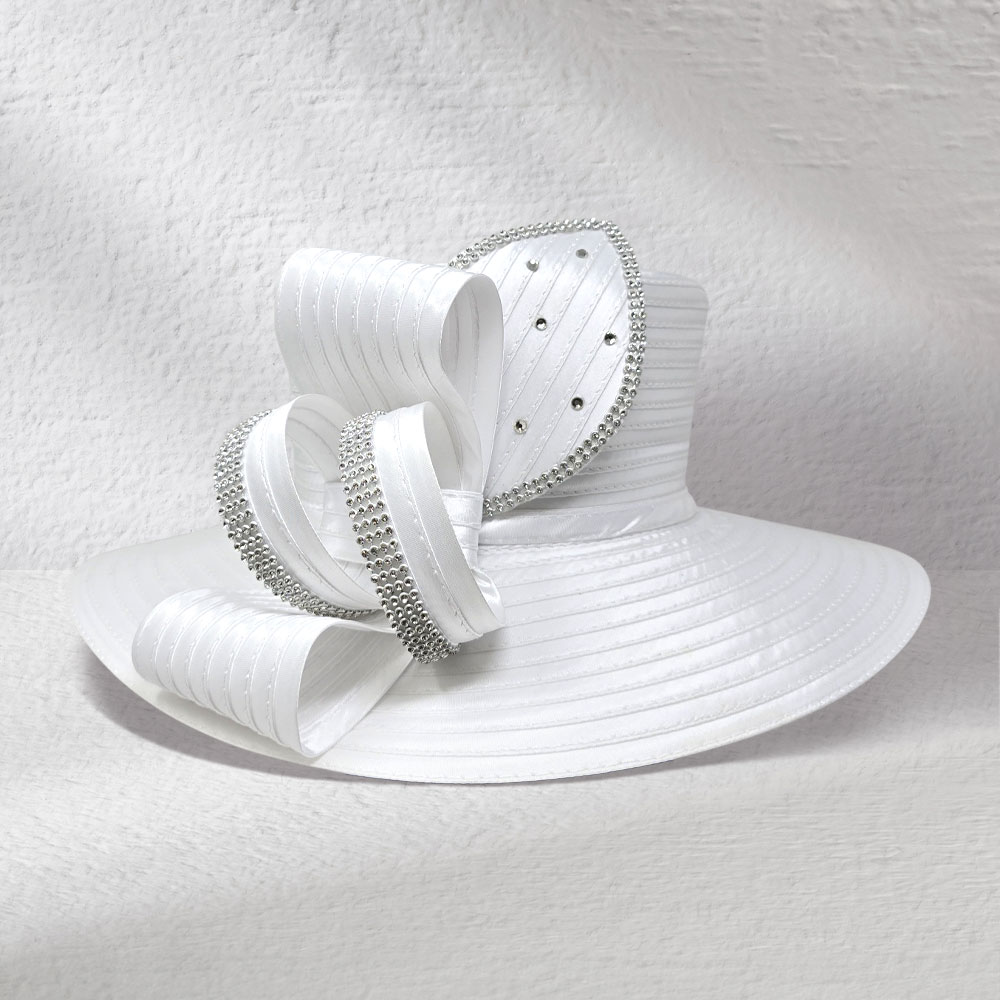 • Make a grand entrance with this elegant wide brim hat featuring bold decorative loops and sparkling rhinestone accents. Perfect for weddings, church events, or formal gatherings, this statement hat combines sophistication with standout style.