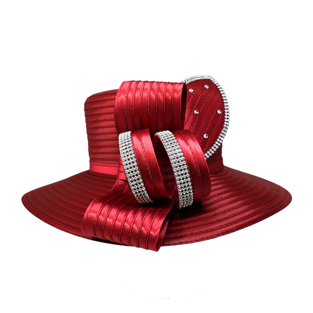 • Make a grand entrance with this elegant wide brim hat featuring bold decorative loops and sparkling rhinestone accents. Perfect for weddings, church events, or formal gatherings, this statement hat combines sophistication with standout style.