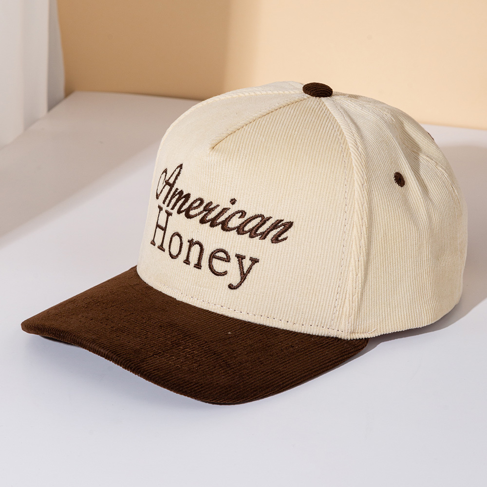AMERICAB HONEY Message Embroidered Five Panel Canvas Snapback Baseball Cap