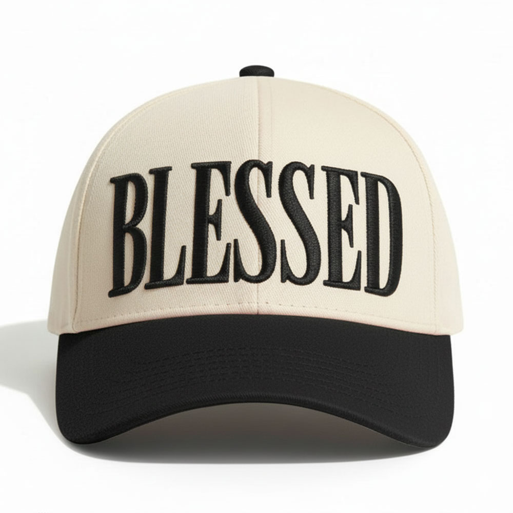 BLESSED Message Embroidered Five Panel Canvas Baseball Cap