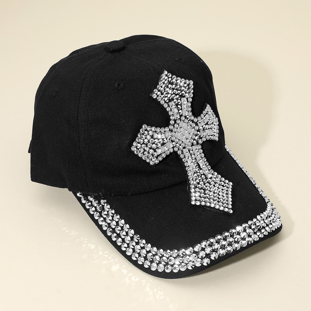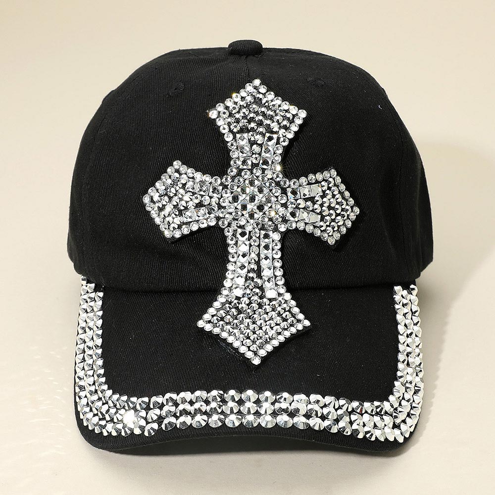 Details • Crown Circumference : 23" (Adjustable) • Crown Height : 4.5" • Brim Height : 3" • Material : 100% Cotton • Bold baseball cap featuring a large rhinestone cross design and sparkling brim accents, perfect for adding edgy glam to casual wear. Ideal for concerts, festivals, street fashion, or statement everyday style. This eye-catching accessory combines comfort with standout sparkle for a unique look.
