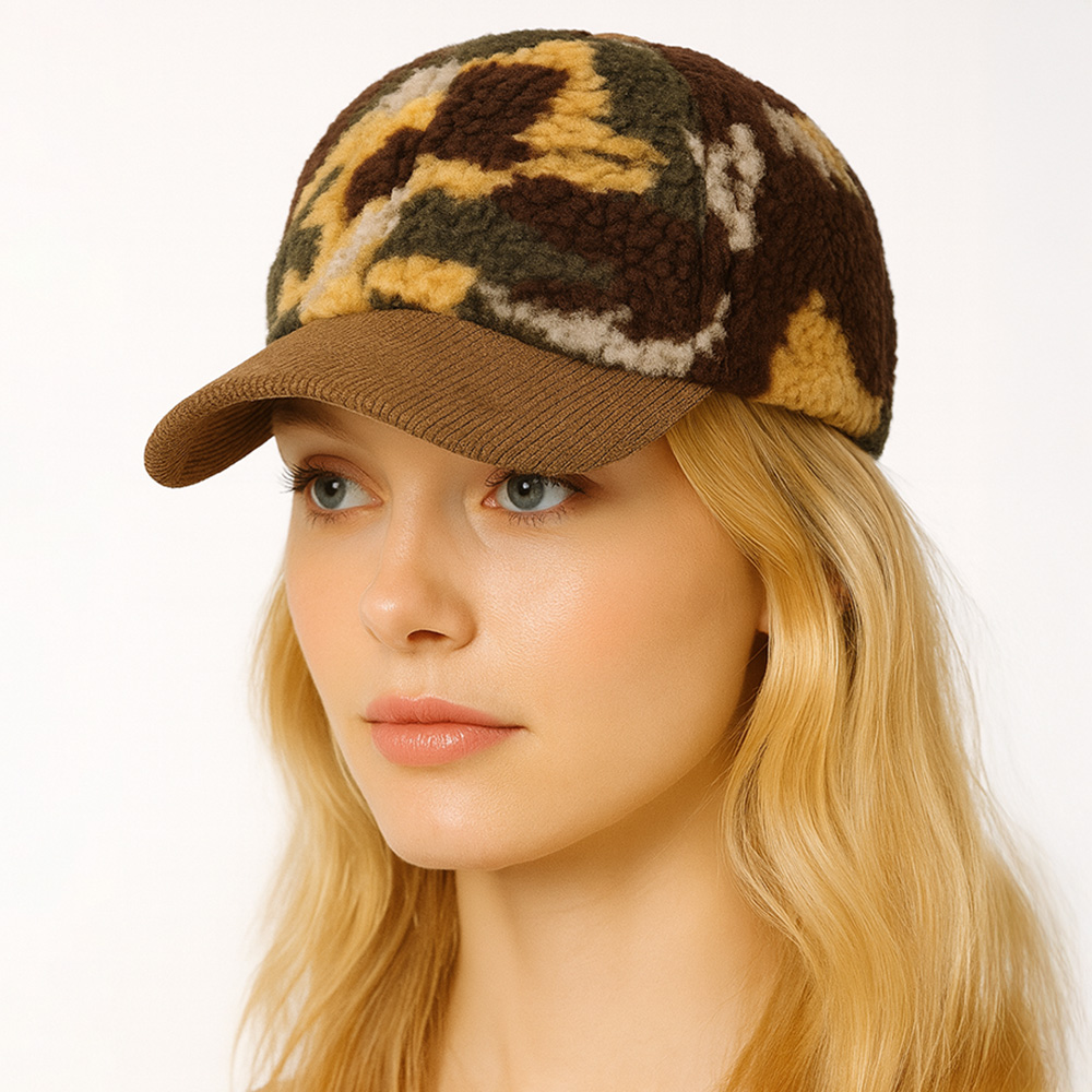 Corduroy Brim Camouflage Print Teddy Bear Baseball Cap