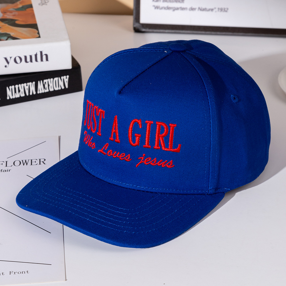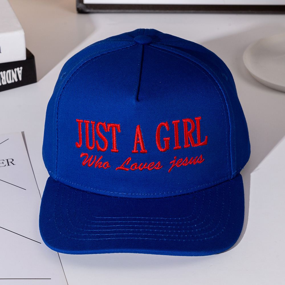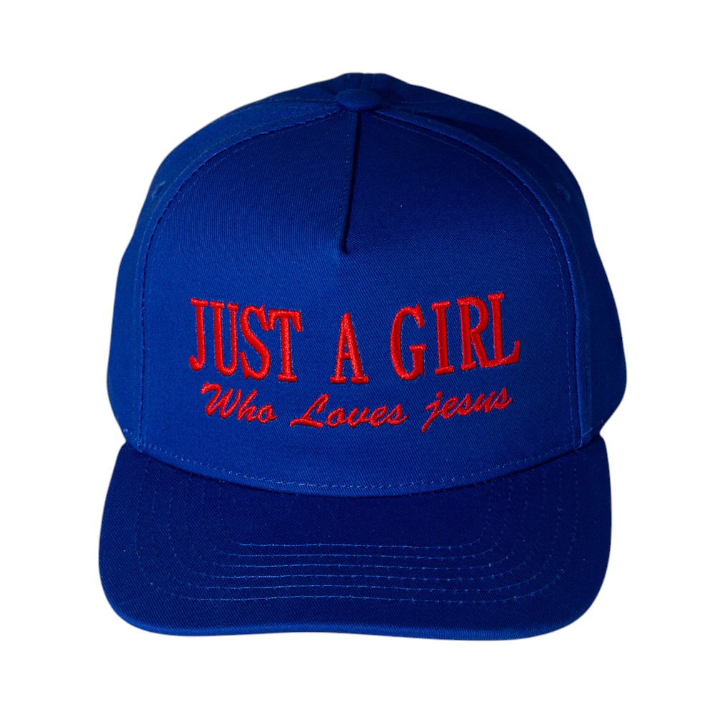 Details • Size : One Size Fits All - Adjustable Strap Makes Fit Comfortable • 5 Panel Canvas Cap : Adjustable Buckle Closure, Relaxed Fit and Pre-Curved Visor • Express your faith in style with the Just a Girl Who Loves Jesus snapback hat. Designed with bold embroidered lettering and a structured fit, this cap makes a meaningful fashion statement. Perfect for casual wear, outdoor activities, or as a thoughtful faith-inspired gift.