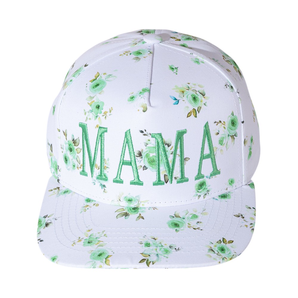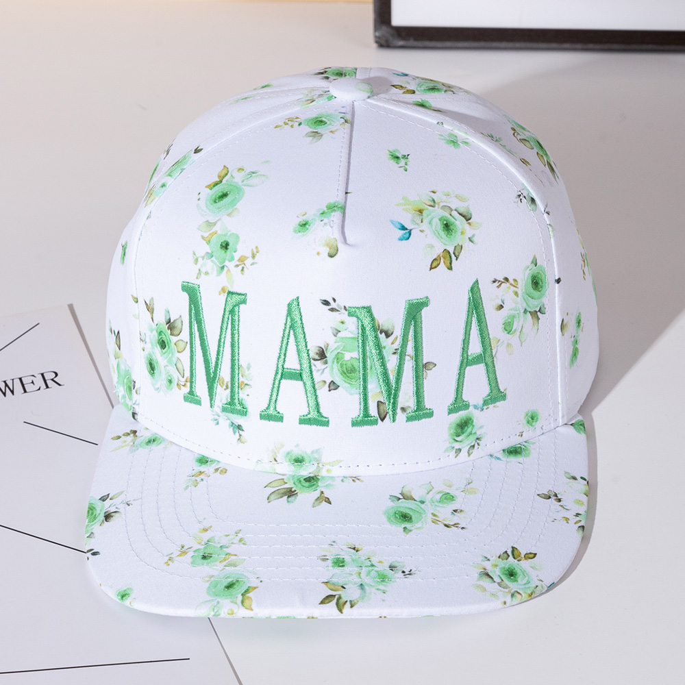 MAMA Floral Embroidered Five Panel Canvas Snapback Baseball Cap