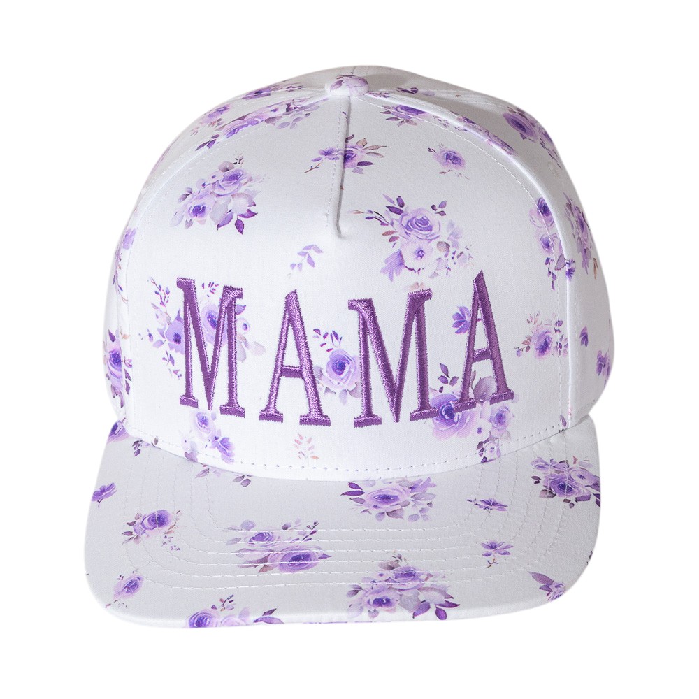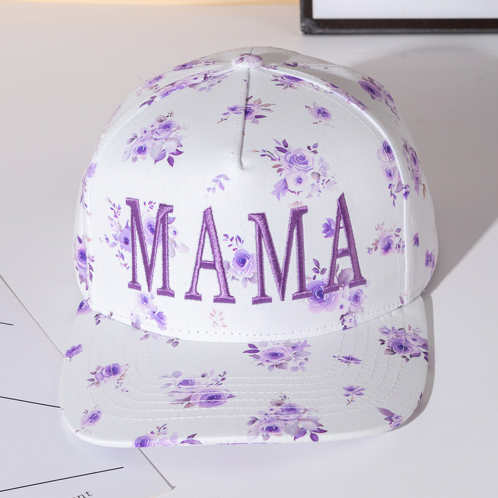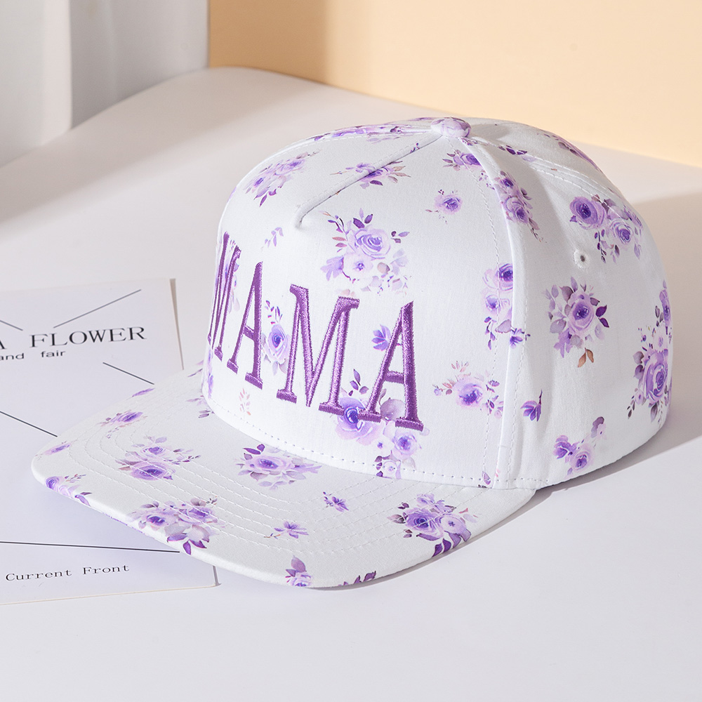 MAMA Floral Embroidered Five Panel Canvas Snapback Baseball Cap
