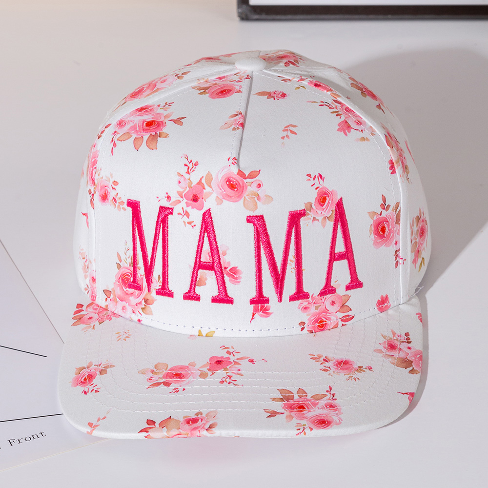 MAMA Floral Embroidered Five Panel Canvas Snapback Baseball Cap