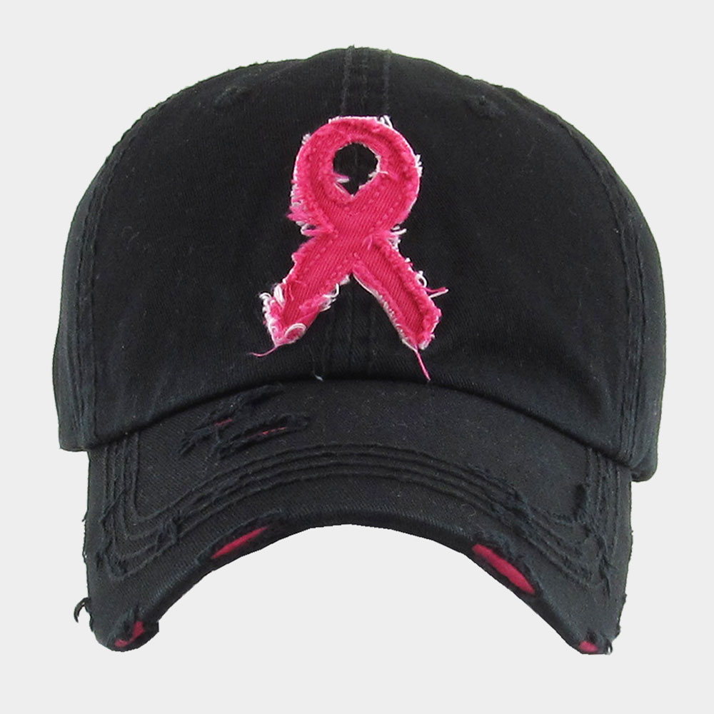 Pink Ribbon Accented Vintage Baseball Cap