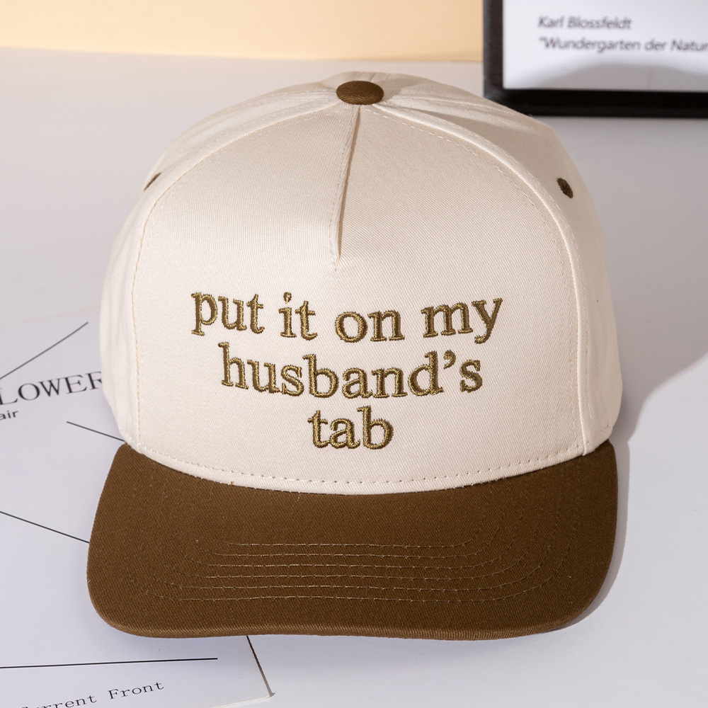 PUT IT ON MY HUSBANDS TAB Message Embroidered Five Panel Canvas Snapback Baseball Cap