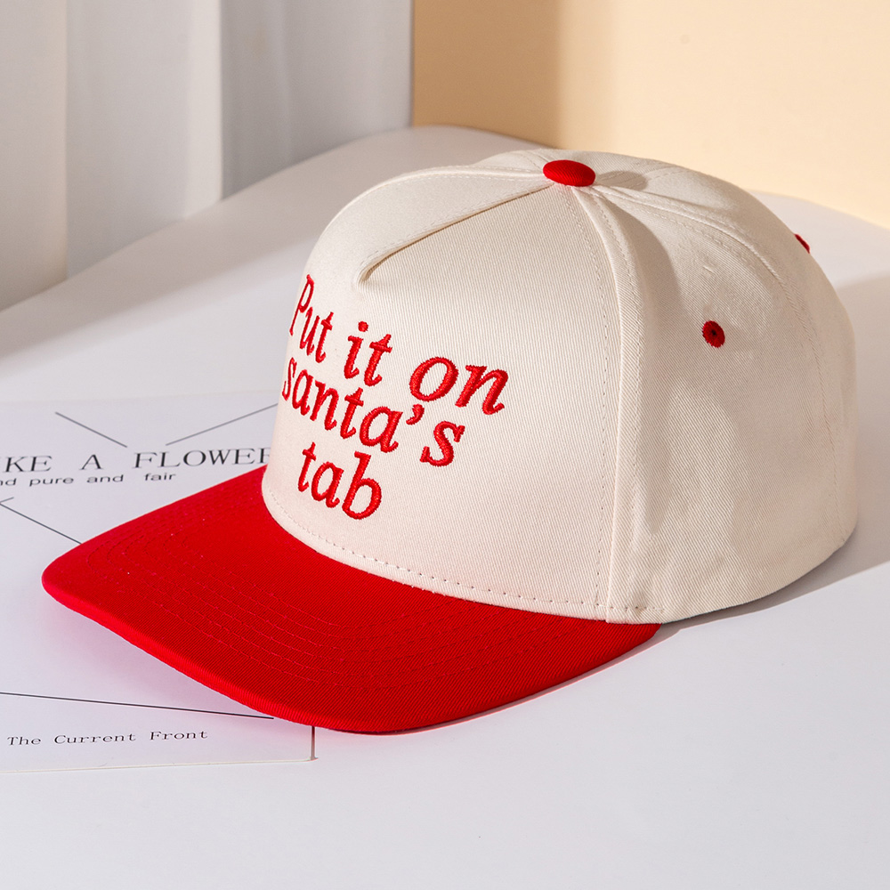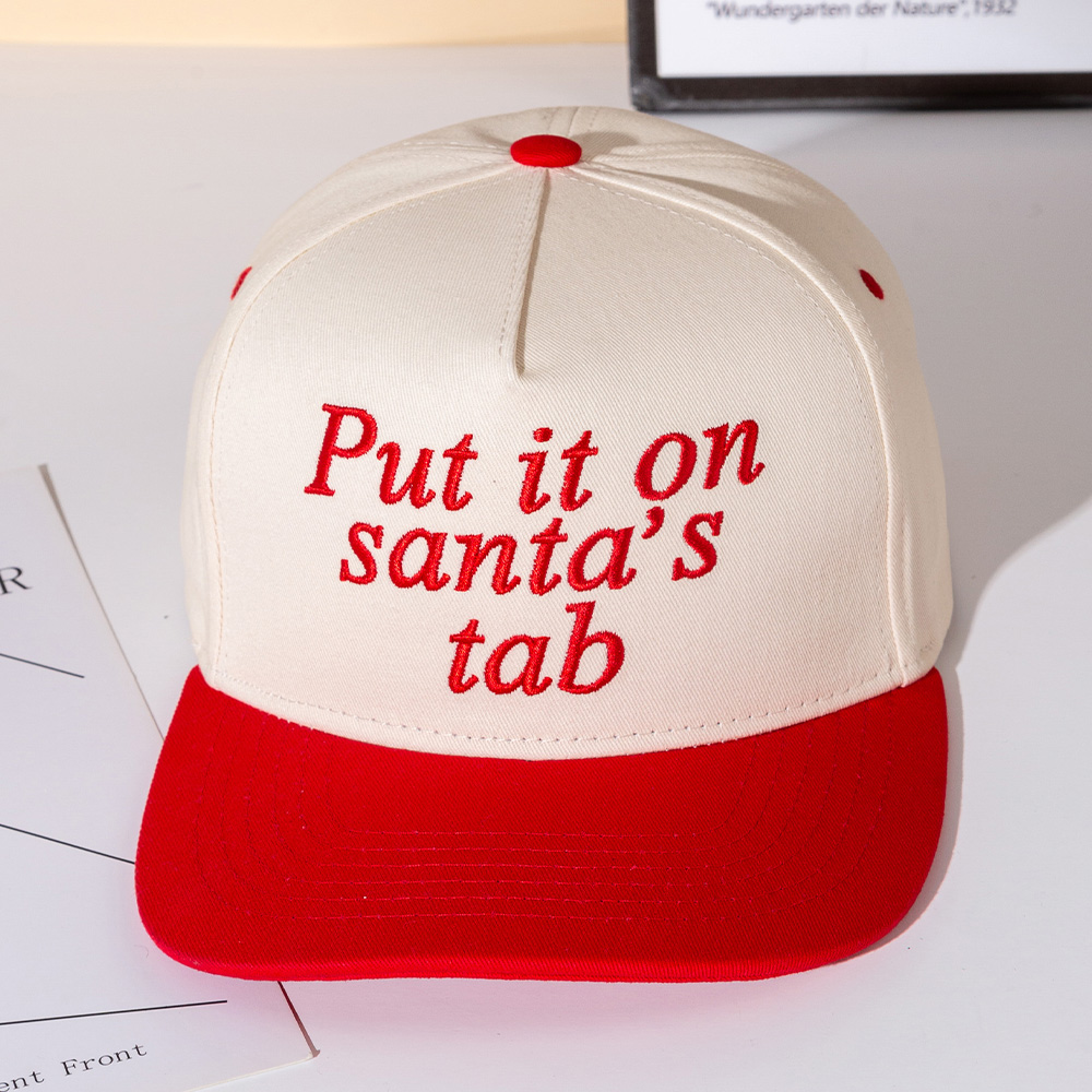Details • Size : One Size Fits All - Adjustable Strap Makes Fit Comfortable • 5 Panel Canvas Cap : Adjustable Buckle Closure, Relaxed Fit and Pre-Curved Visor • Add festive humor to your look with the Put It on Santa’s Tab baseball cap, a playful embroidered hat perfect for holiday parties, casual outings, or gifting. A fun seasonal accessory that spreads cheer while keeping your style relaxed and trendy.