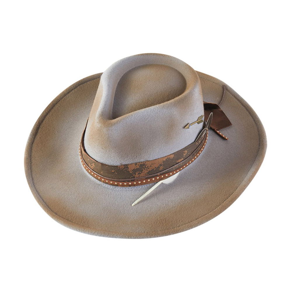 Details • Crown Circumference : 23" • Crown Height : 4.5" • Brim Height : 3.75" • Material : 100% Polyester • Capture authentic western style with the Classic Western Hat featuring a distressed band and arrow detail. Designed for durability and comfort, it adds rugged sophistication to any outfit—perfect for outdoor adventures, festivals, or everyday wear with a vintage-inspired edge.