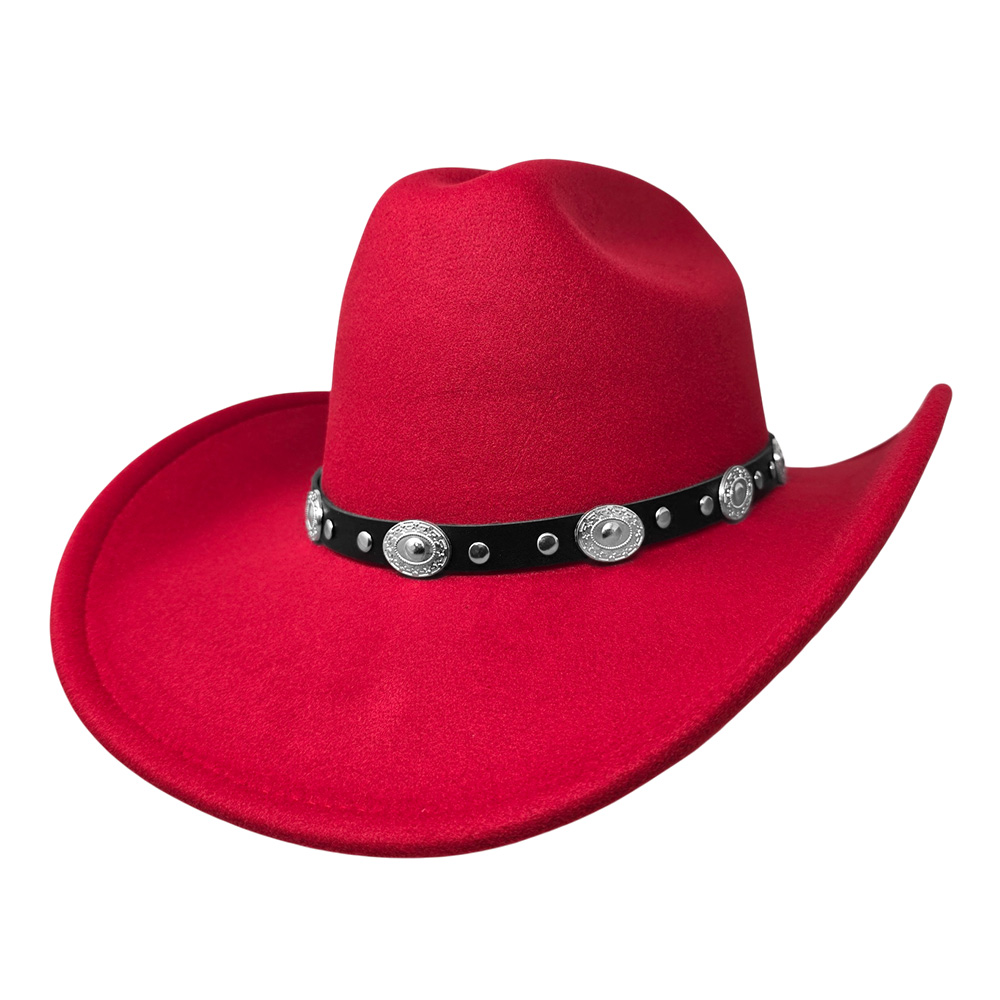 • Classic western cowboy hat featuring a wide brim and a stylish decorative concho band. Perfect for country events, rodeos, festivals, or casual wear, this versatile hat combines traditional charm with bold western flair.