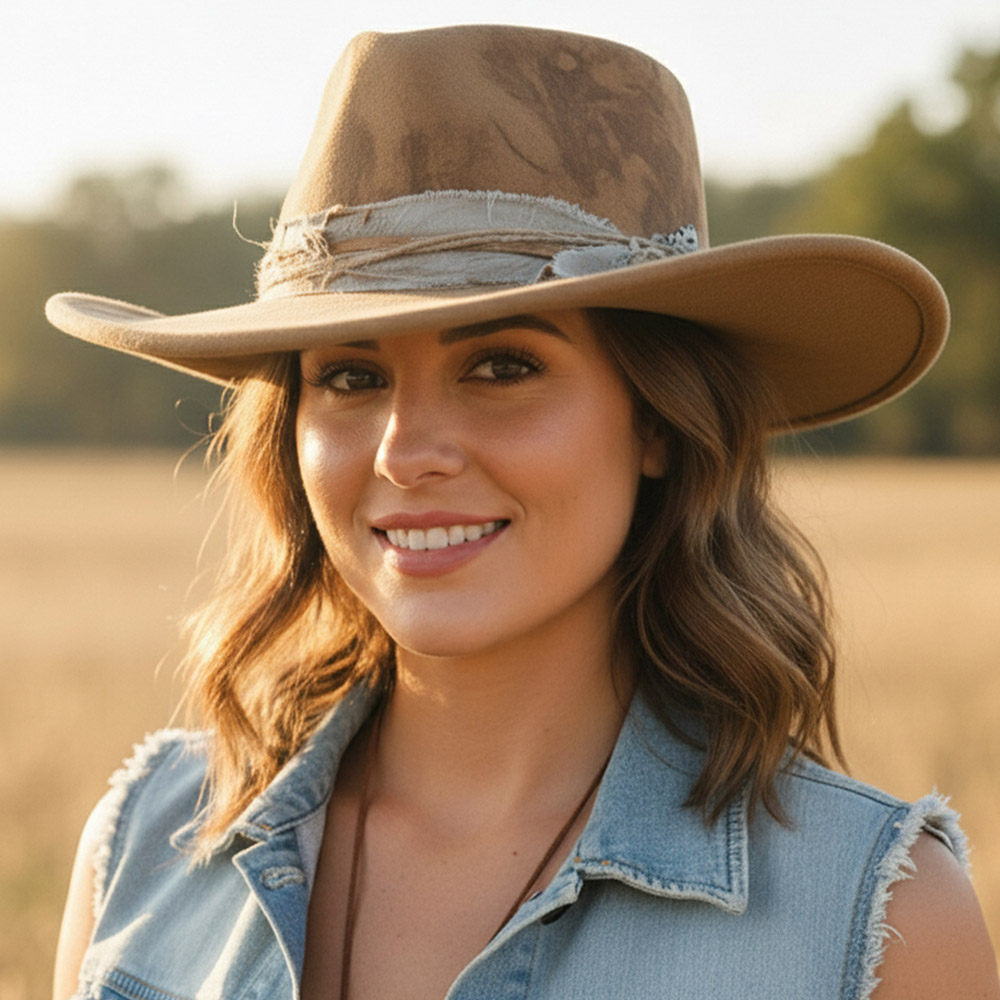 Details • Crown Circumference : 23" • Crown Height : 4.5" • Brim Height : 3.75" • Material : 100% Polyester • Embrace rustic charm with the Distressed Western Hat, featuring a vintage-inspired design with feather and ribbon accents. Its weathered finish adds authentic character, making it perfect for festivals, travel, or everyday wear that showcases effortless western style and confidence.