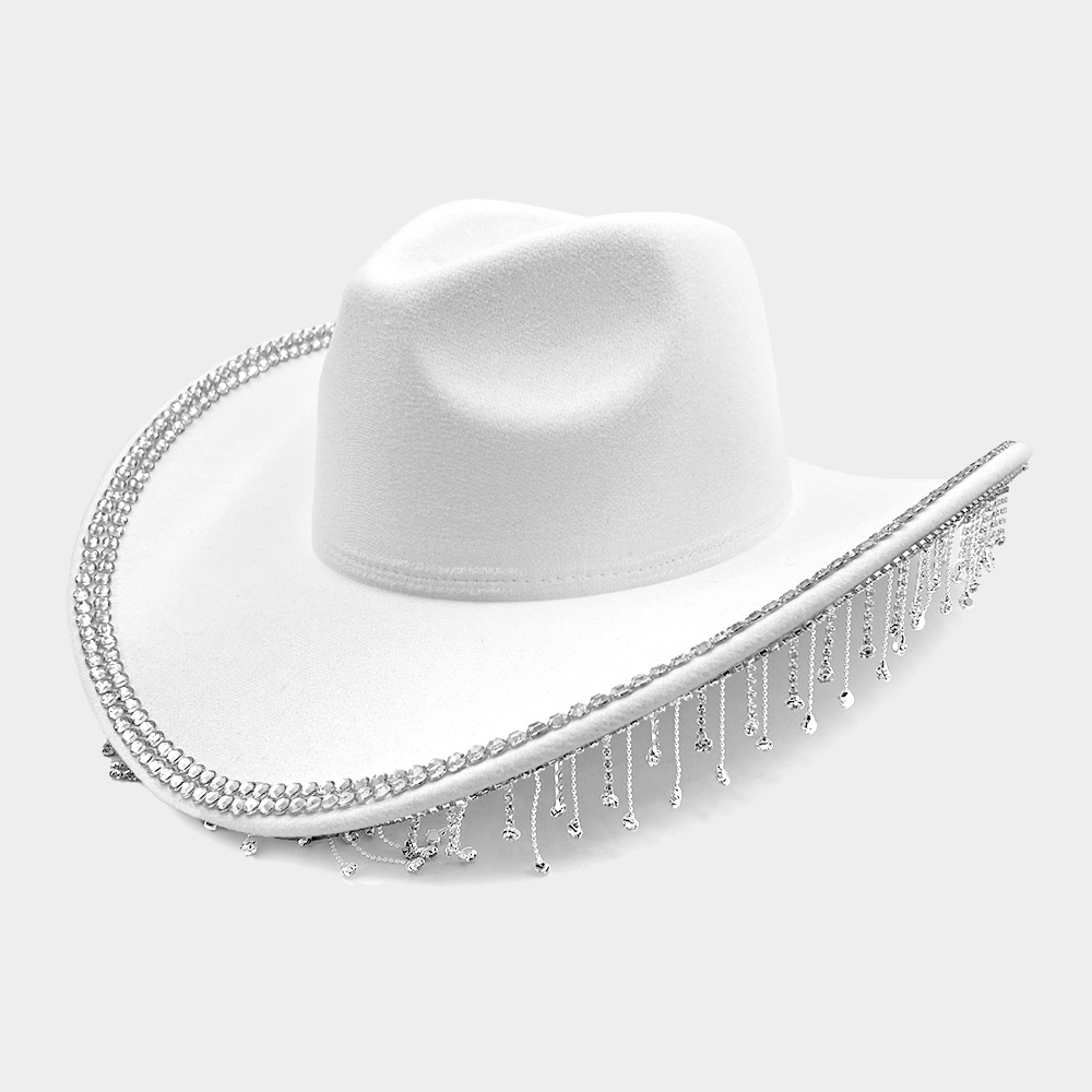 Rhinestone Stone Paved Fringe Around Cowboy Western Hat