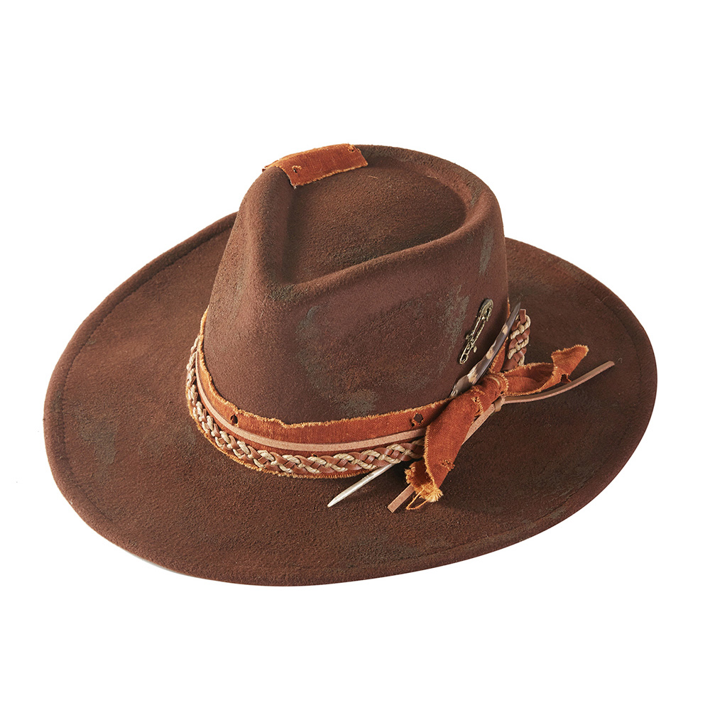 Details • Size : One Size • Material : 100% Polyester • Add western flair to your look with this rustic cowboy hat featuring a stylish band and feather detail. Designed in a classic shape with wide brim, this versatile one-size hat is perfect for festivals, themed parties, concerts, and bold everyday style.