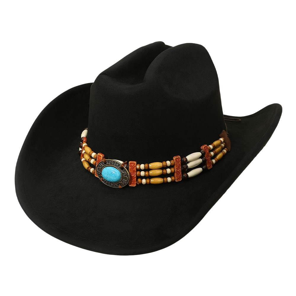 Details • Crown Circumference : 23" • Crown Height : 4.75" • Brim Height : 3.75" • Material : 100% Polyester • Western cowboy hat featuring a handcrafted beaded band with a bold concho centerpiece for authentic style. Perfect for rodeos, concerts, festivals, and casual outings, this durable hat blends traditional western charm with unique detail, making it a standout accessory for cowboy fashion lovers.