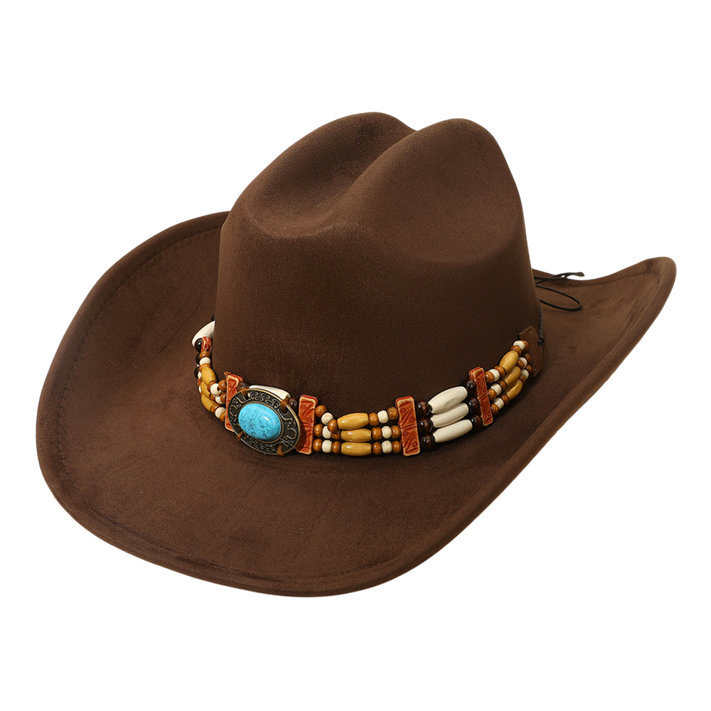 Details • Crown Circumference : 23" • Crown Height : 4.75" • Brim Height : 3.75" • Material : 100% Polyester • Western cowboy hat featuring a handcrafted beaded band with a bold concho centerpiece for authentic style. Perfect for rodeos, concerts, festivals, and casual outings, this durable hat blends traditional western charm with unique detail, making it a standout accessory for cowboy fashion lovers.