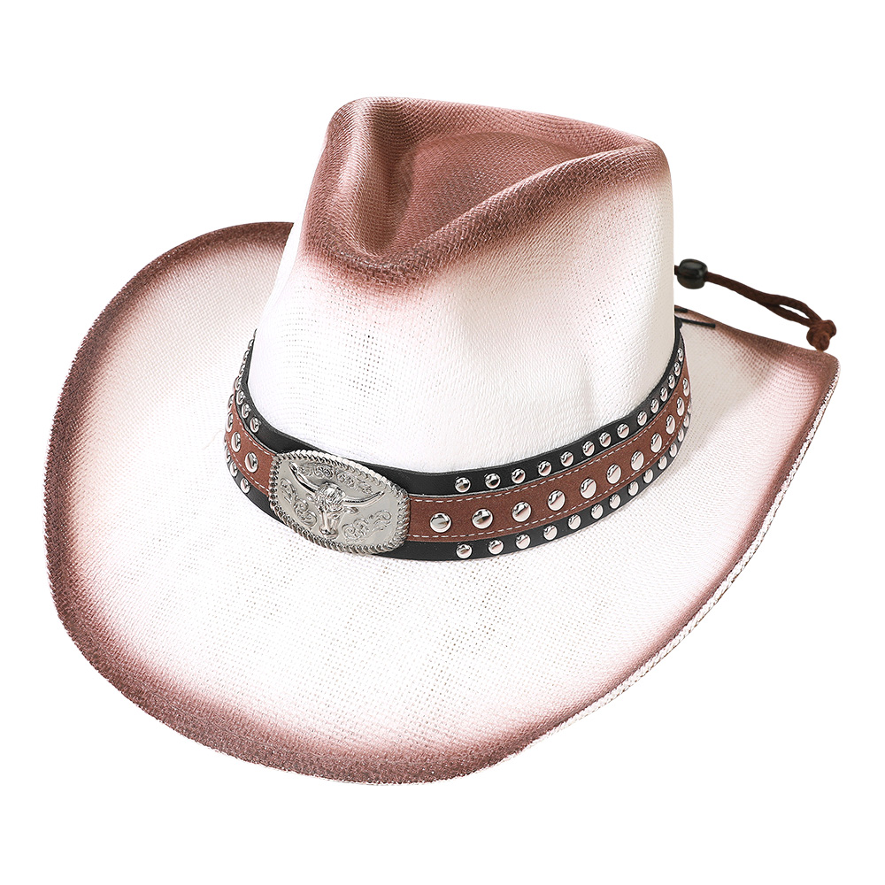 Western Oval Steer Head Buckle Studded Band Cowboy Fedora Hat