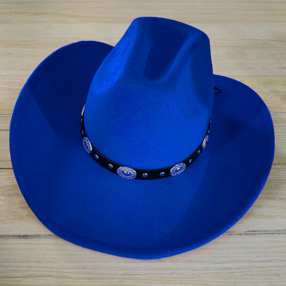 Faux Leather Metal Concho Band Western Cowboy Hat