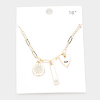 18k Gold Filled Devil Eye Accent Teardrop Charm Station Necklace