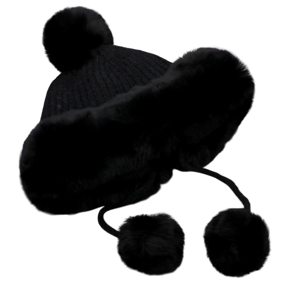 Solid Pom Pom Soft Fluffy Beanie Hat