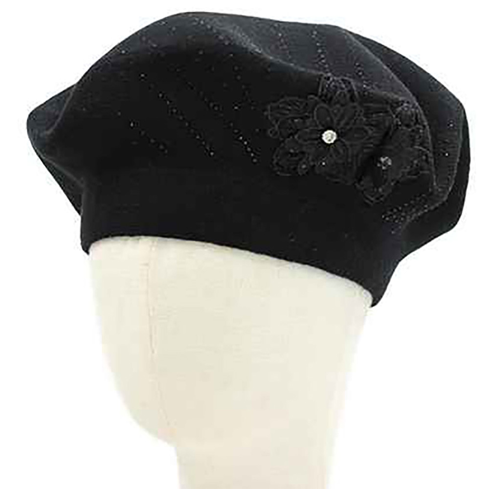 Floral Applique Accent Winter Beret Hat Floral Applique Accent Winter Beret Hat Floral Applique Accent Winter Beret Hat