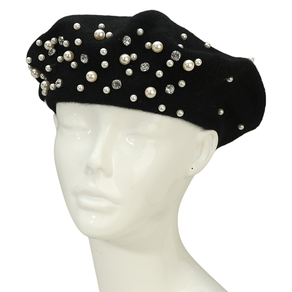 Details • Size : One Size • Material : 50% Wool, 50% Acrylic • Chic beret hat adorned with decorative accents for a stylish and elegant touch. Perfect for adding flair to everyday or dressy outfits, this fashionable accessory gives a polished look and makes a lovely addition to any wardrobe or seasonal collection.