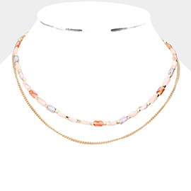 Oval Stone Pointed Multi Layered Pearl Choker Necklace
