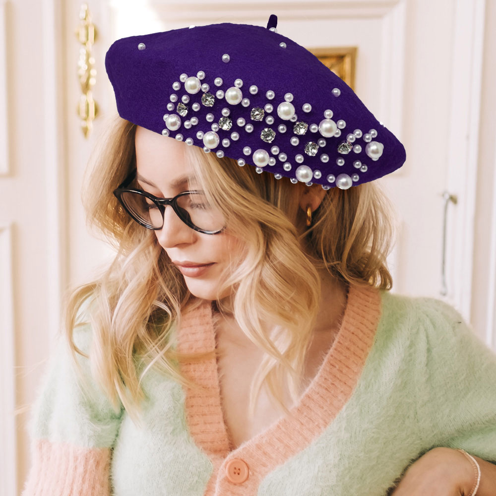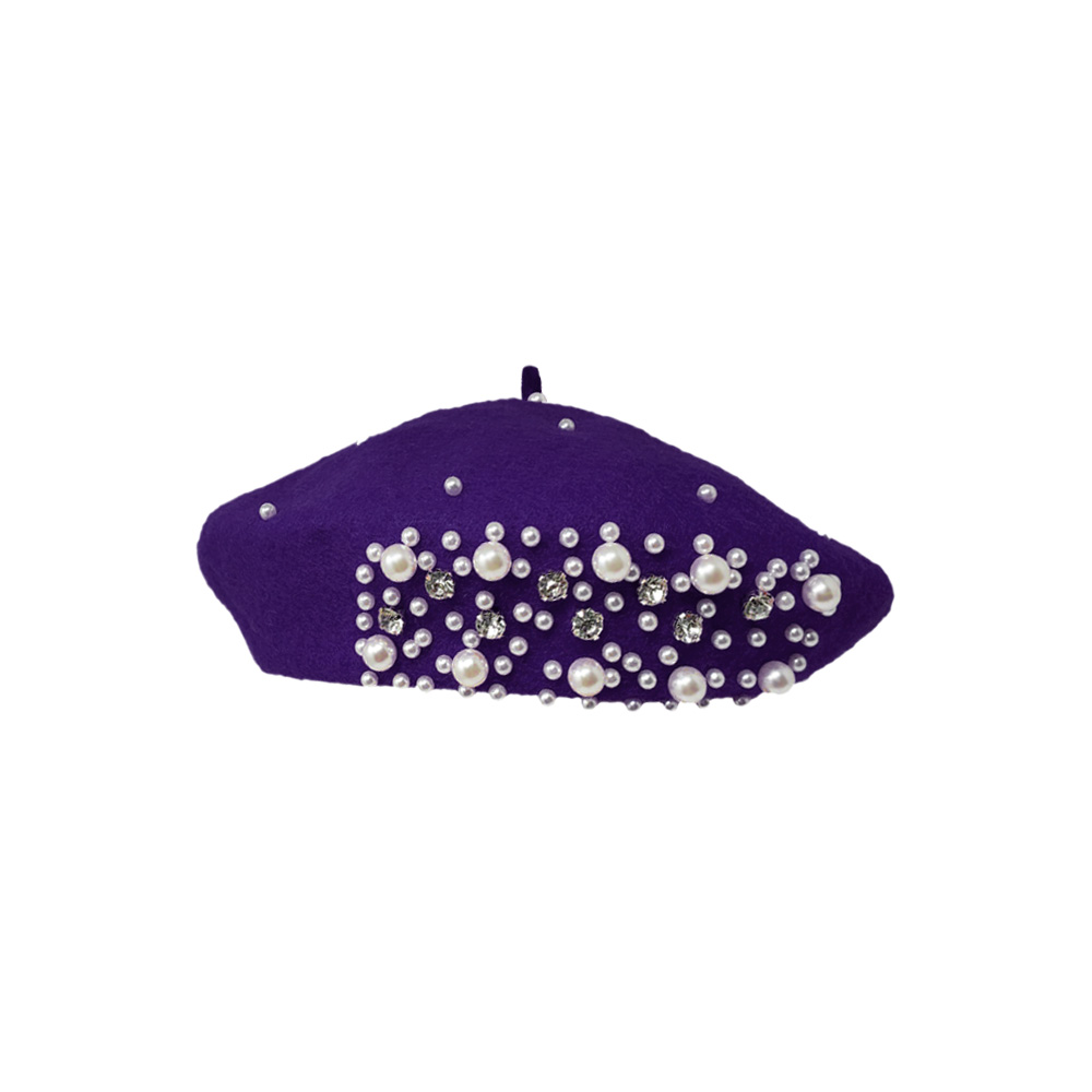 Details • Size : One Size • Material : 80% Wool, 20% Acrylic • Chic beret hat adorned with pearl embellishments for a stylish and elegant look. Perfect for elevating seasonal outfits, this accessory adds a touch of sophistication and charm, making it a fashionable addition to both casual and dressy wardrobes.