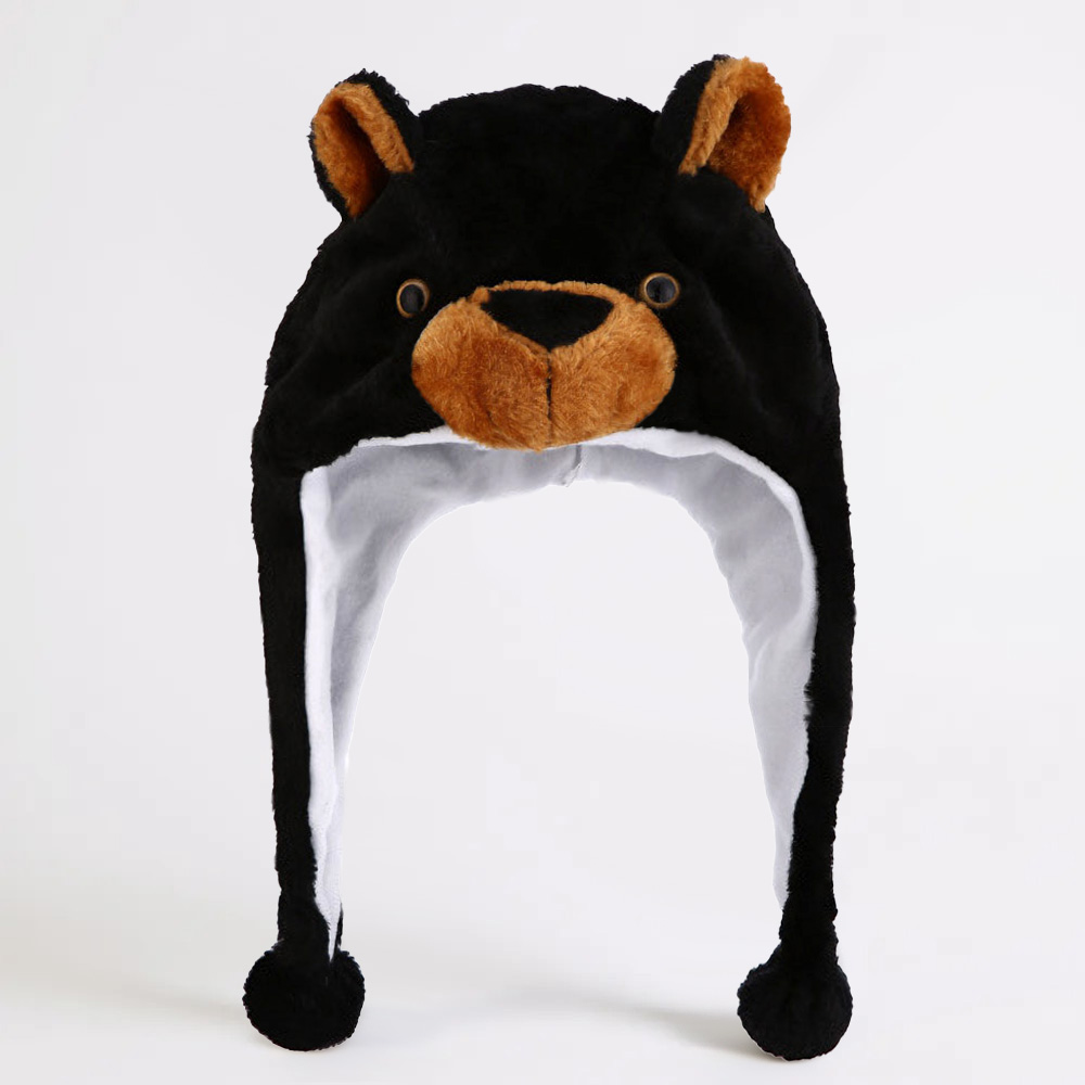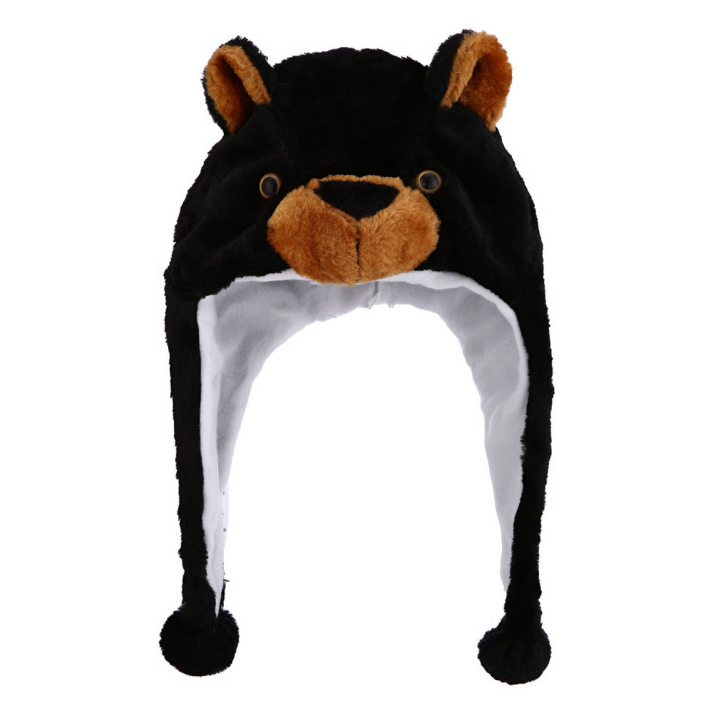 Details • Size : One Size (14" L) • Material : 100% Polyester • Adorable plush bear animal hat with soft fabric, 3D bear face, and cozy ear flaps for warmth. Perfect for costumes, themed parties, or playful winter wear. This novelty bear hat suits kids and adults, adding comfort, fun, and character to outfits, cosplay looks, or seasonal events.