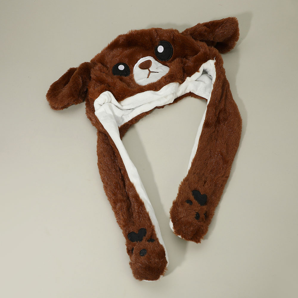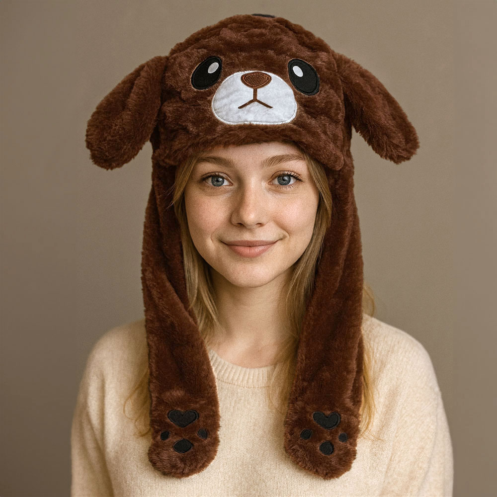 Details • Size : One Size (18" L) • Material : 100% Polyester • Add a playful twist to your look with this cute puppy ear hat featuring ears that perk up and move when you press the paws. Perfect for parties, costumes, or everyday fun, this cozy accessory brings joy and charm, making it a delightful gift for kids, teens, and adults.