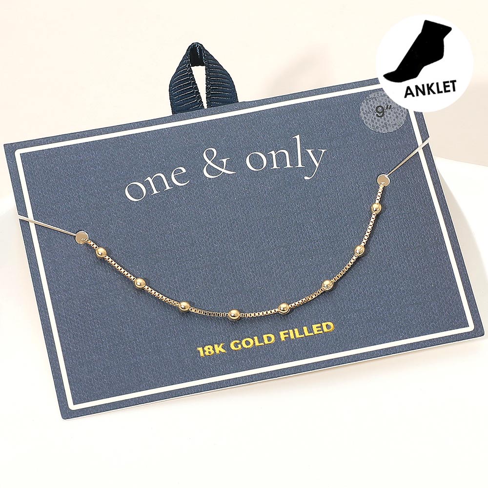 Details • Size : 0.1" H, 9" L • Lobster Clasp Closure • Chic beaded station anklet featuring evenly spaced polished beads on a fine chain for a refined, feminine finish. Perfect for layering or wearing solo, this minimalist anklet adds a graceful touch of shine to any casual or dressy outfit. • Gold Filled • Lead and Nickel Compliant • Made In Brazil