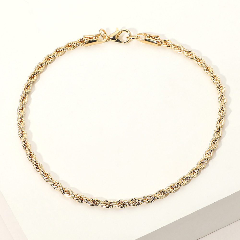 Details • Size : 0.1" H (3mm), 8.5" L • Lobster Clasp Closure • Elegant twisted rope chain anklet featuring a polished braided design that adds timeless shine and texture. Perfect for both casual and dressy looks, this anklet brings a touch of sophistication and effortless style to your everyday accessories collection. • Gold Filled • Lead and Nickel Compliant • Made In Brazil