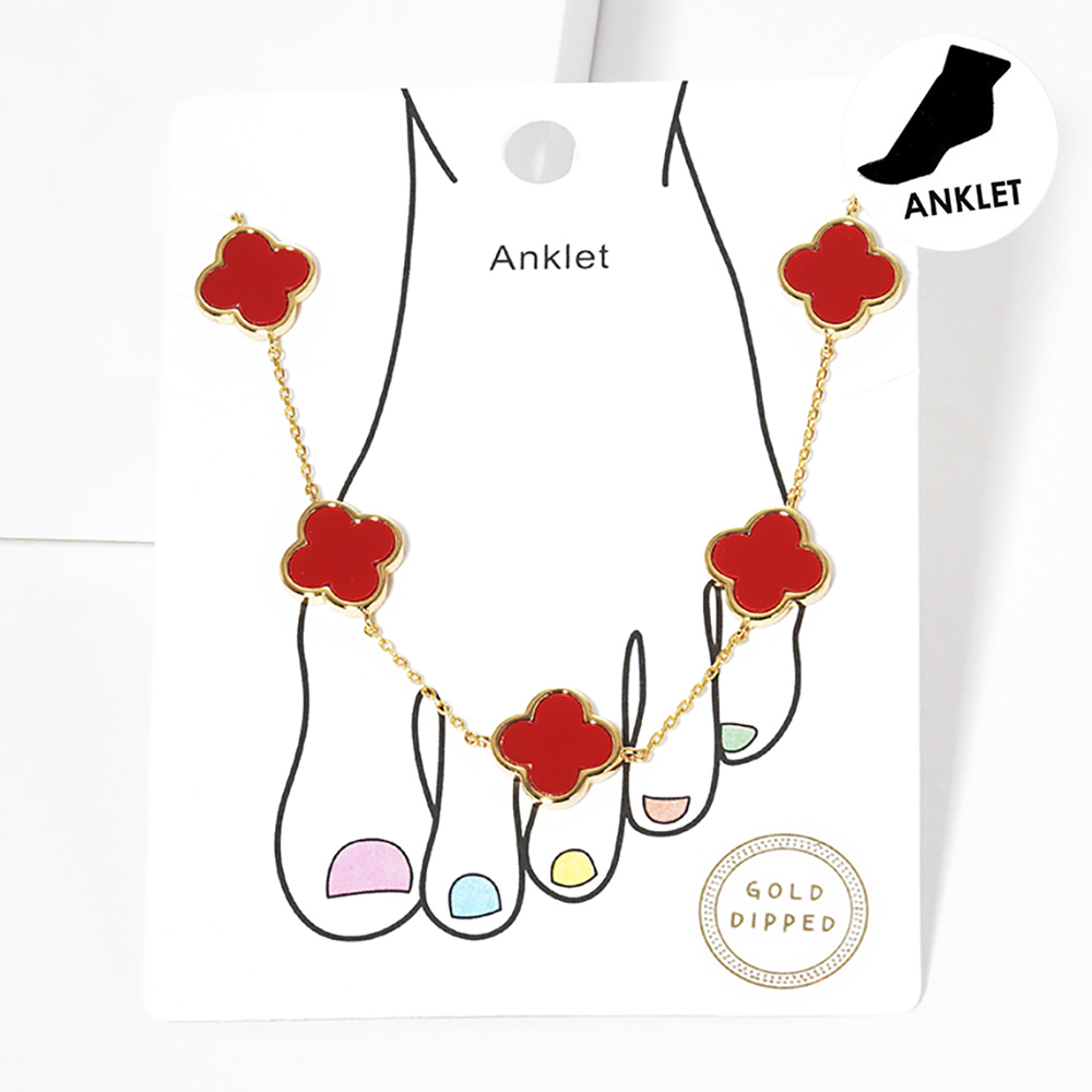 Gold Dipped Mother of Pearl Quatrefoil Link Anklet