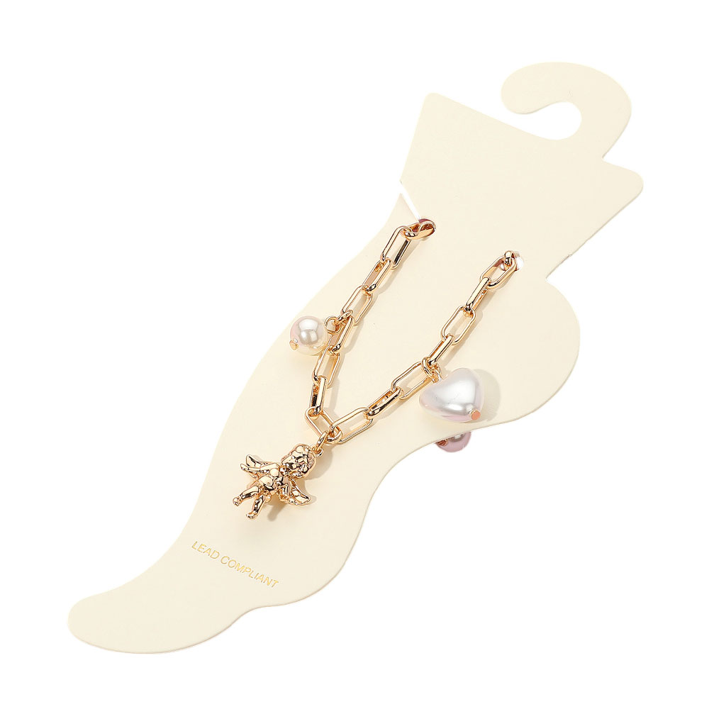 Heart Pearl Metal Bow Angel Balloon Dog Charm Station Paperclip Chain Anklet